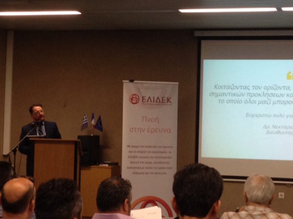 Η Γενική Γραμματέας Έρευνας και Τεχνολογίας κα Πατρίτσια Κυπριανίδου μεταξύ άλλων υπογράμμισε: «Το ΕΛ.ΙΔ.Ε.Κ. με την ουσιαστική στήριξη της Γενικής Γραμματείας Έρευνας & Τεχνολογίας στα πρώτα του βήματα, έχει ήδη έργο και πεπραγμένα ενώ με συνέπεια και συστηματική δουλειά έχει ήδη παράξει απτά αποτελέσματα θέτοντας όχι μόνο ποσοτικούς αλλά και ποιοτικούς στόχους».