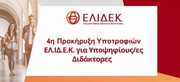 Αναλυτικές πληροφορίες σχετικά με την 4η Προκήρυξη ΕΛ.ΙΔ.Ε.Κ. για Υποψήφιους/ες Διδάκτορες θα συναντήσετε εδώ