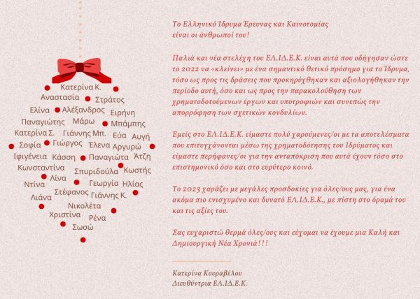 Το 2023 χαράζει με μεγάλες προσδοκίες για όλες/ους μας, για ένα ακόμα πιο ενισχυμένο και δυνατό ΕΛ.ΙΔ.Ε.Κ., με πίστη στο όραμά του και τις αξίες του.