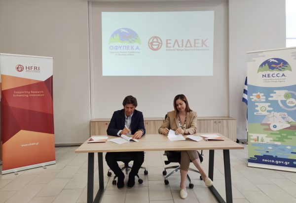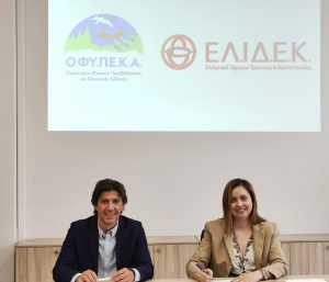 Προγραμματική σύμβαση με στόχο την υλοποίηση του ερευνητικού προγράμματος με τίτλο «Μελέτες πεδίου ενδημικών και απειλούμενων και εθνικής σημασίας ειδών της Ελλάδας» καθώς και του Προγράμματος Χορήγησης Υποτροφιών υπέγραψαν την Παρασκευή, 2 Ιουνίου 2023 ο Διευθύνων Σύμβουλος του Οργανισμού Φυσικού Περιβάλλοντος και Κλιματικής Αλλαγής (Ο.ΦΥ.ΠΕ.Κ.Α.), αναπληρωτής καθηγητής κ. Κωνσταντίνος Τριάντης και η Διευθύντρια του Ελληνικού Ιδρύματος Έρευνας και Καινοτομίας (ΕΛ.ΙΔ.Ε.Κ.), Δρ Κατερίνα Κουραβέλου.