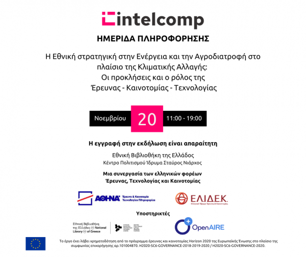 Η εκδήλωση πραγματοποιείται στο πλαίσιο του ευρωπαϊκού έργου INTELCOMP: A Competitive Intelligence Cloud/High Performance Computing Platform for Artificial Intelligence-based Science, Technology and Innovation Policy Making και έχει ως στόχο να φέρει σε επαφή την ευρύτερη δυνατή ομάδα ενδιαφερομένων, συμπεριλαμβανομένων εκπροσώπων των φορέων χάραξης πολιτικής, της βιομηχανίας, των περιβαλλοντικών και τεχνολογικών εμπειρογνωμόνων και των ενδιαφερόμενων για τις κοινωνικές επιπτώσεις φορέων της Κοινωνίας των Πολιτών, για να συζητήσουν – ο καθένας με την ιδιότητά του – τις ΕΤΚ εξελίξεις και τα κρίσιμα ζητήματα που αφορούν την ενεργειακή βιωσιμότητα και το παραγωγικό μοντέλο στην αγροδιατροφή στο πλαίσιο της Κλιματικής Αλλαγής.