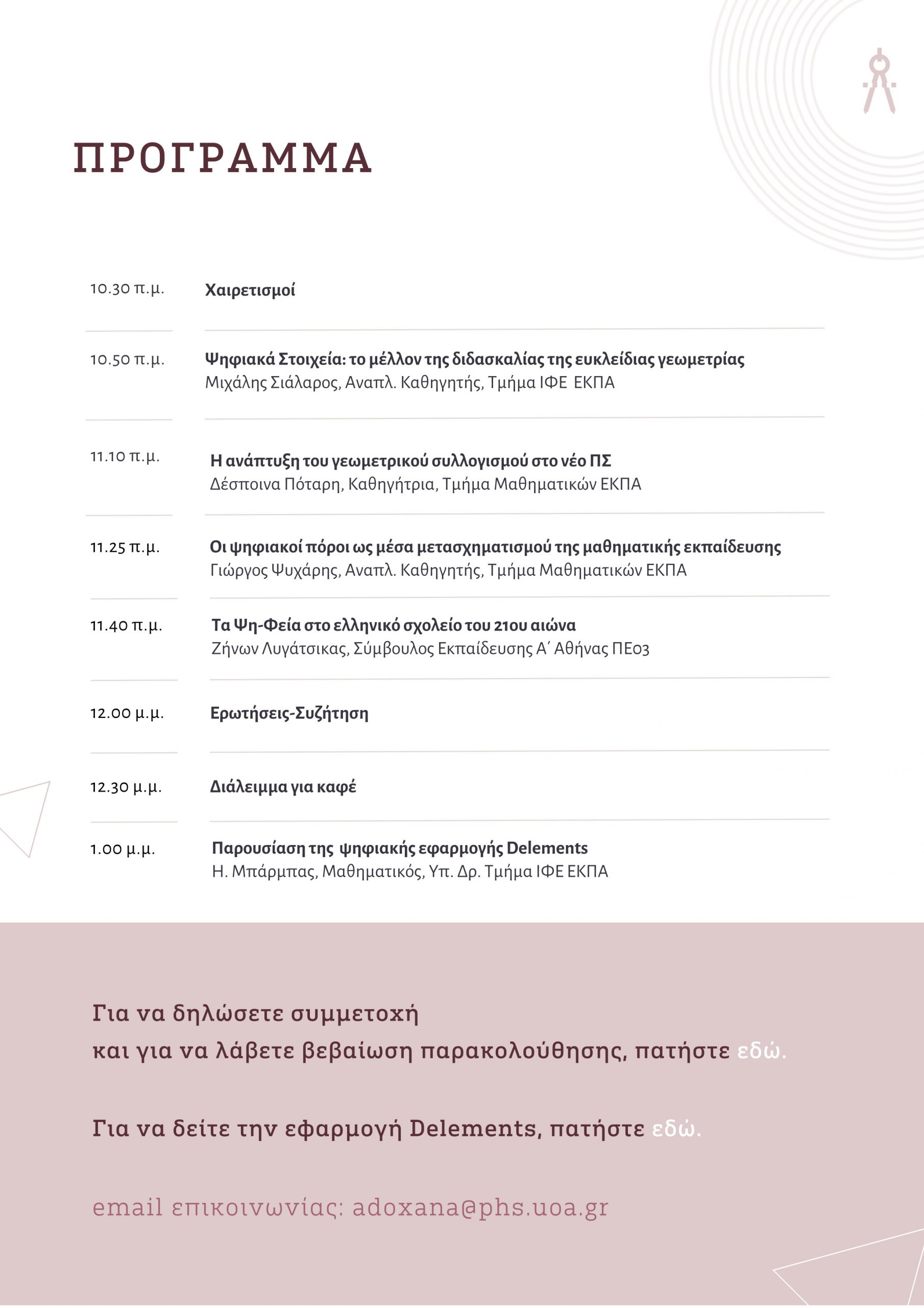 Για να δηλώσετε συμμετοχή και για να λάβετε βεβαίωση παρακολούθησης, πατήστε εδώ