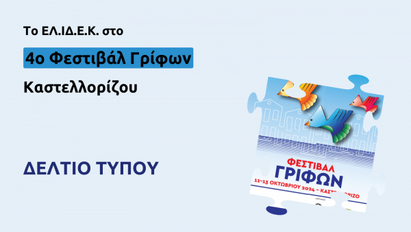 Το ΕΛ.ΙΔ.Ε.Κ. ευχαριστεί θερμά τους διοργανωτές του Φεστιβάλ Γρίφων Καστελλορίζου, τον κ. Πανταζή Χούλη και την κ. Ελένη Γραμματικοπούλου, για την εξαιρετική συνεργασία και τη δυνατότητα να ταξιδέψει η επιστημονική γνώση στην άκρη του Αιγαίου.
