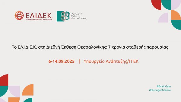 Το Ελληνικό Ίδρυμα Έρευνας και Καινοτομίας (ΕΛ.ΙΔ.Ε.Κ.) συμμετέχει για 7η συνεχή χρονιά στη Διεθνή Έκθεση Θεσσαλονίκης, επιβεβαιώνοντας τη διαρκή του παρουσία στον δημόσιο διάλογο για την έρευνα και την καινοτομία. Από τις 6 έως και τις 14 Σεπτεμβρίου 2025, θα βρίσκεται στο Περίπτερο 7, του Υπουργείου Ανάπτυξης και της Γενικής Γραμματείας Έρευνας και Καινοτομίας.