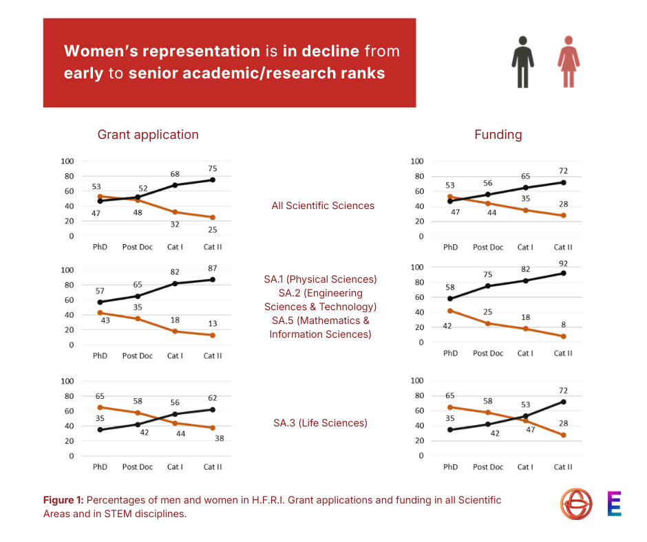 As part of its Gender Equality Plan and its participation in SEE-ERA program, H.F.R.I. seeks to make these disparities visible and implement targeted actions to mitigate them.