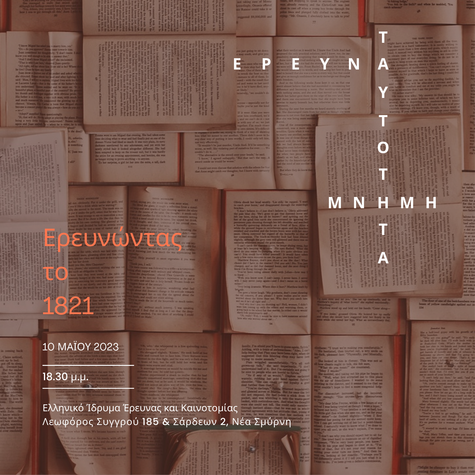Εκδήλωση ΕΛ.ΙΔ.Ε.Κ. «Ερευνώντας το 1821: Έρευνα, Μνήμη, Ταυτότητα» – Τετάρτη, 10 Μαΐου 2023