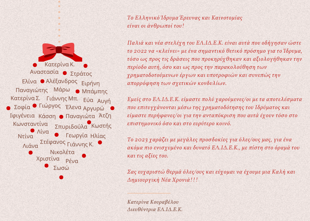 Θερμές ευχές από το Ελληνικό Ίδρυμα Έρευνας και Καινοτομίας