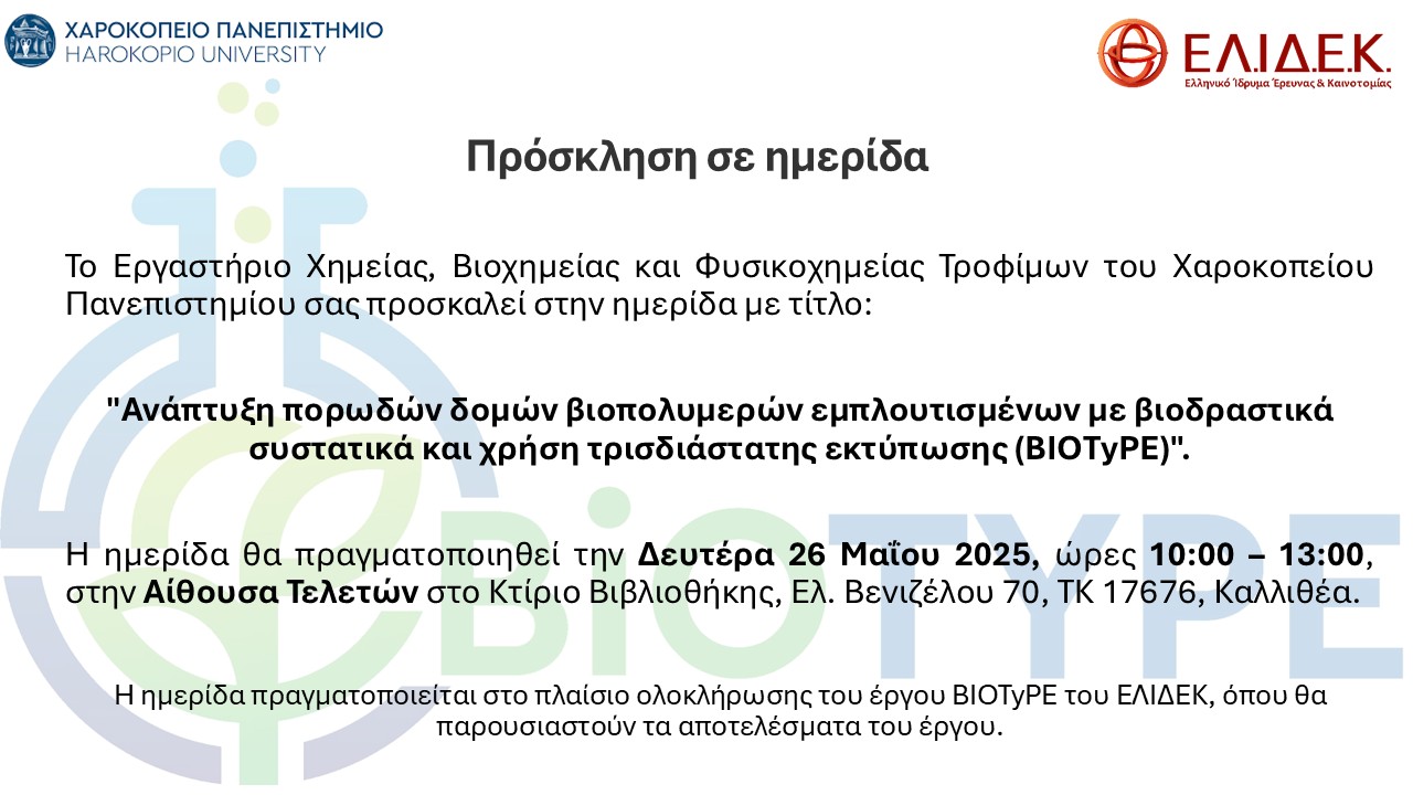Ημερίδα στο πλαίσιο ολοκλήρωσης του χρηματοδοτούμενου Έργου «BIOTyPE»