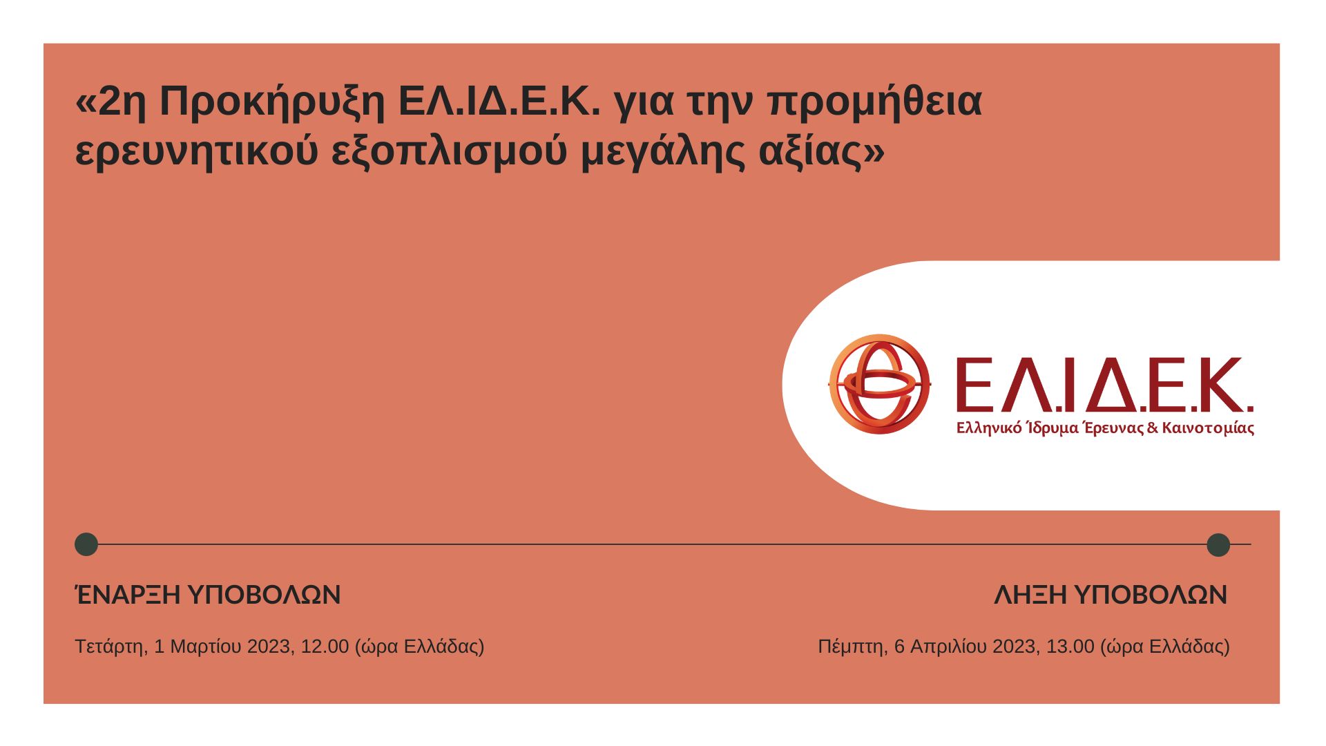 Δημοσίευση «2ης Προκήρυξης ΕΛ.ΙΔ.Ε.Κ. για την προμήθεια ερευνητικού εξοπλισμού μεγάλης αξίας»