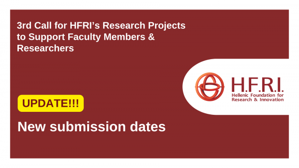H.F.R.I. announced the 2nd amendment to the “3rd H.F.R.I. Call for the Support of Faculty Members and Researchers”, extending the opening date and deadline for submissions.