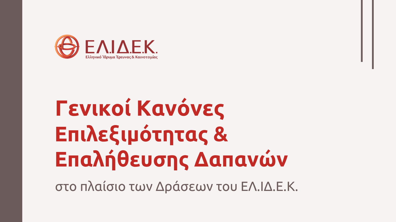 Κανόνες Επιλεξιμότητας και Επαλήθευσης Δαπανών στο πλαίσιο των Δράσεων του ΕΛ.ΙΔ.Ε.Κ.