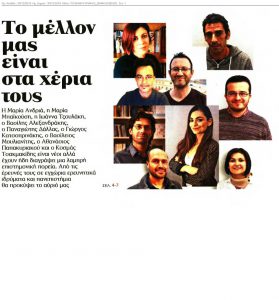 Αφιέρωμα του “Βήματος Science” στους Έλληνες ερευνητές στο Βήμα της Κυριακής από τη δημοσιογράφο Ιωάννα Σουφλέρη, 30/12/2018